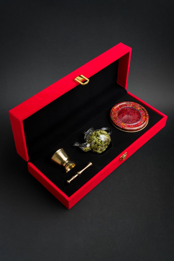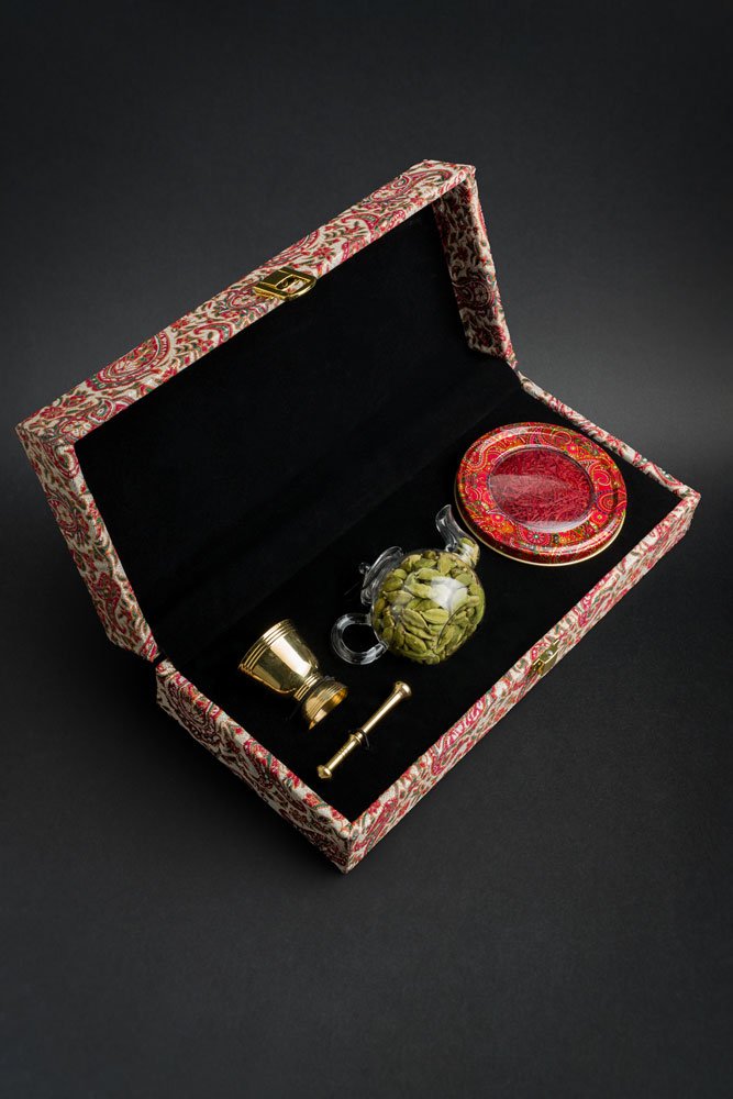 2g Saffron with Grinder and Cardamom, a nice product with 3 pairs of colors.